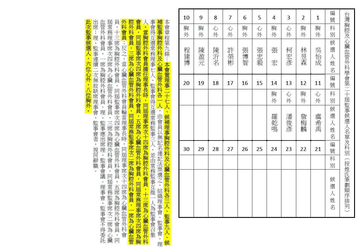 台灣胸腔及心臟血管外科學會 Taiwan Association of Thoracic & Cardiovascular Surgery 地址:110台北市中正區常德街一號景福館 電話:(02)2987-1020 本網站所有資訊內容屬台灣胸腔及心臟血管外科學會所有,非經同意不得以任意形式轉載或使用